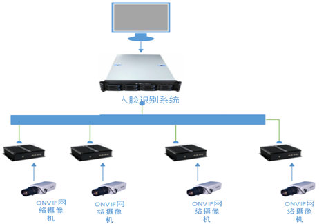 前端配置两路设备,即两台不同型号的摄像机,两台微型人脸服务器。